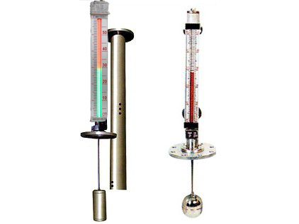 液位計(jì)根據(jù)浮力原理和磁性耦合作用原理工作。當(dāng)被側(cè)容器中的液全升降時(shí),液位計(jì)主導(dǎo)管中的浮子也隨之升降,浮子內(nèi)的磁鋼通過磁耦合傳遞到現(xiàn)場指示器,驅(qū)動(dòng)紅白翻柱翻轉(zhuǎn)180°,當(dāng)液位上升時(shí),翻柱由白色轉(zhuǎn)為紅色,當(dāng)液位下降時(shí),翻柱由紅色轉(zhuǎn)為白色,指示器的紅、白界位處為容器內(nèi)介質(zhì)液位的實(shí)際高度,從而實(shí)現(xiàn)液位的指示。加裝限位開關(guān)實(shí)現(xiàn)液位報(bào)警與控制,加裝變送器實(shí)現(xiàn)標(biāo)準(zhǔn)信號輸出供顯示與控制。
